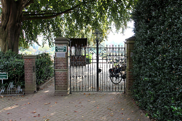 |  | Ingang begraafplaats Ingang naar de begraafplaats met de mooie tekst "Heden ik - morgen gij" |