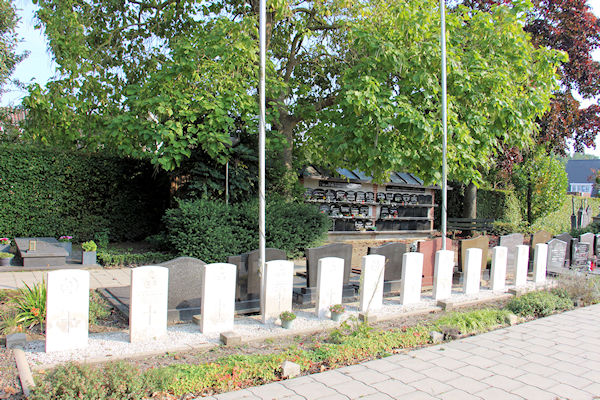 |  | Urnenmuur Urnenmuur met op de voorgrond de oorlogsgraven |