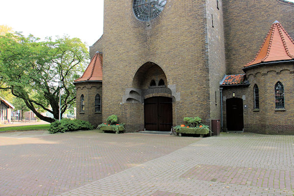 |  | Hoofdingang kerk Dit is de hoofdingang naar onze kerk met als eerste ruimte het portaal waar rechts de toegang naar het koor en de klokken is en rechtdoor is de weg naar de kerk |