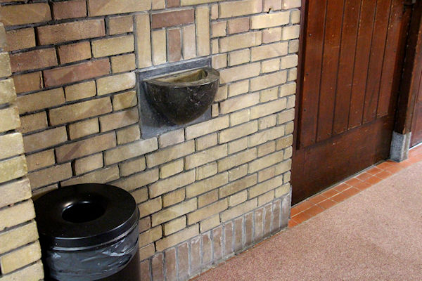 |  | Wijwaterbak Mogelijkheid om met het wijwater de vingers nat te maken en een kruisteken te maken bij het naar binnen gaan in de berk. |