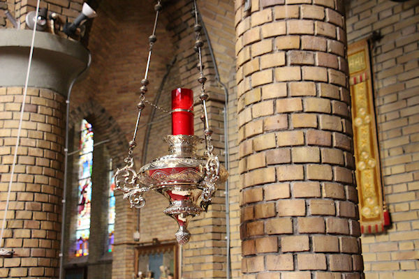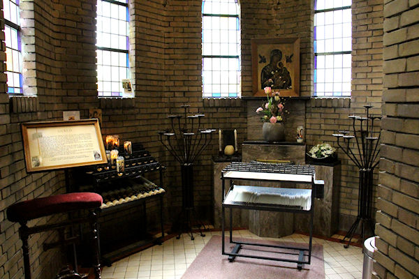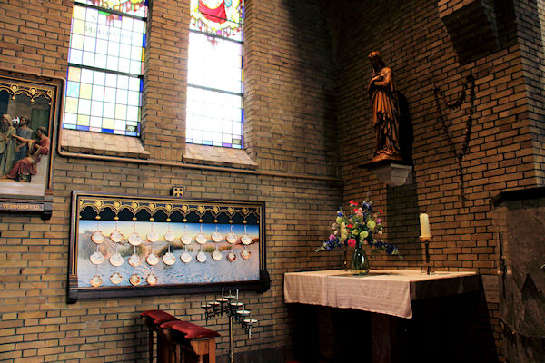 Dit is de Mariakapel rechts achter in de kerk. Regelmatig komen er mensen in kerk om even te bidden en/of een kaarsje op te steken.