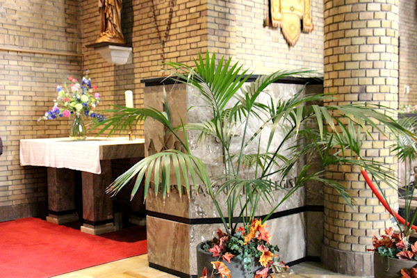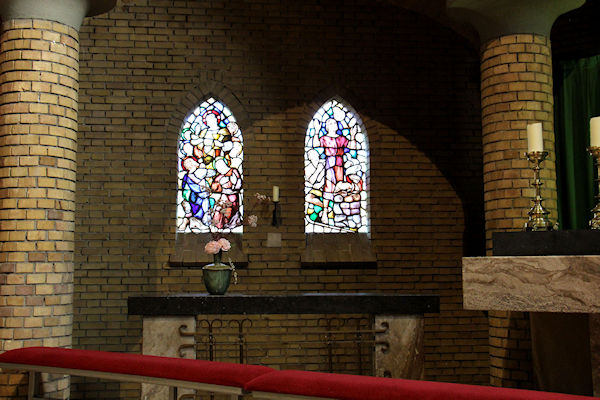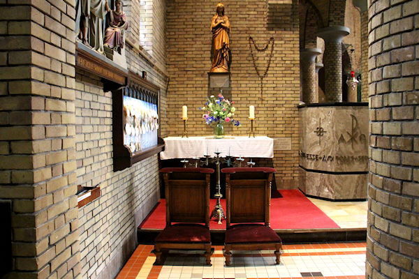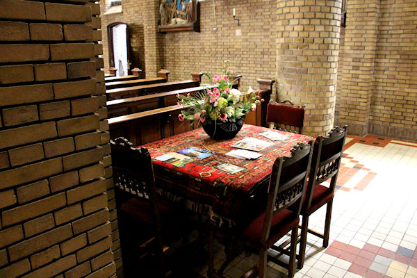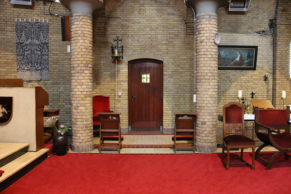 |  | Rechter zijgang naar voren Dit is aan de rechterkant in de kerk de gang naar voren. U komt langs de kapel annex aula die aan de kerk is gebouwd. |