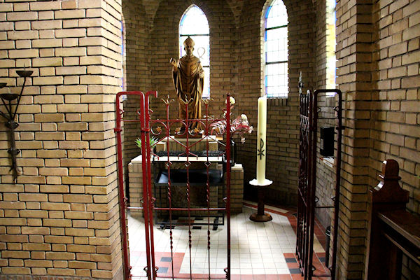 Dit is links achter in de kerk de gang naar het Plechelmusbeeld.