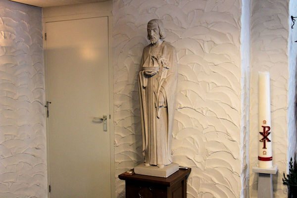 |  | Beeld links achter in de kerk Dit is het beeld van de H. Jozef, gezien vanaf de gang midden. |