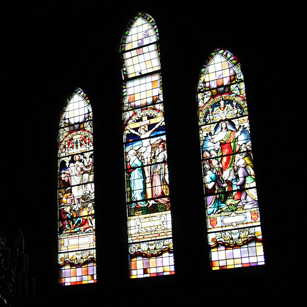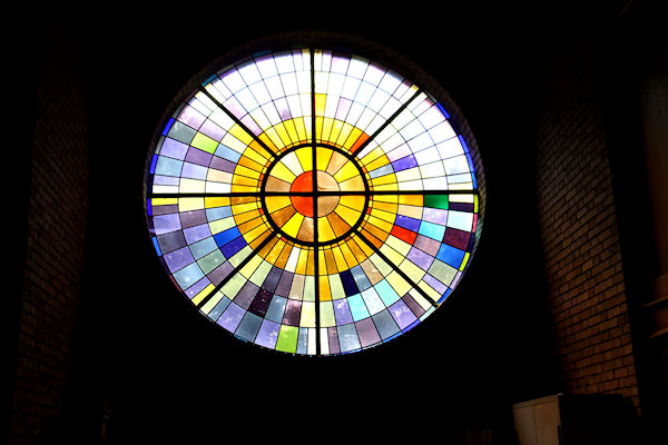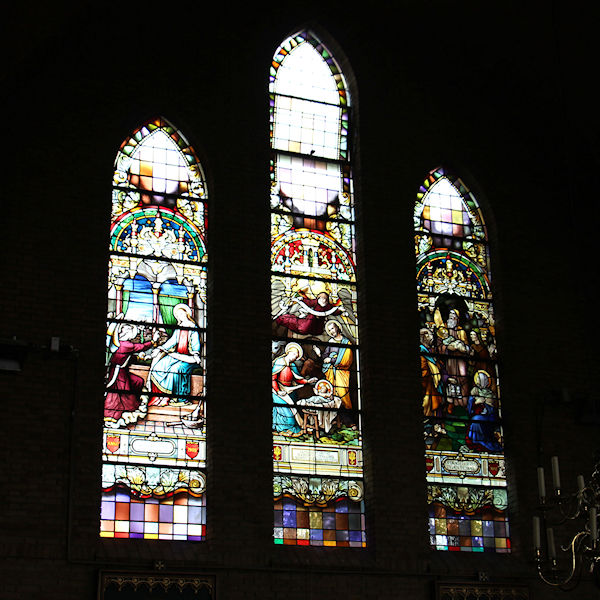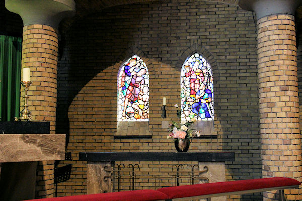 |  | Koor Glas-in-lood raam in de ruimte waar het koor staat. |