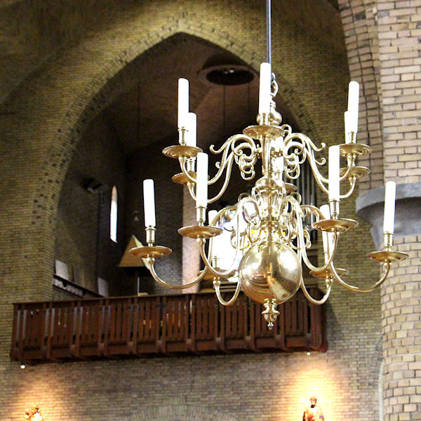 Dit is de gang achter in de kerk gezien vanaf de plaats waar het Plechelmusbeeld staat.