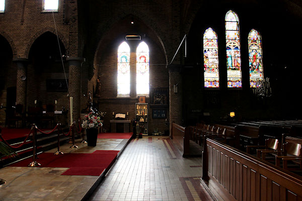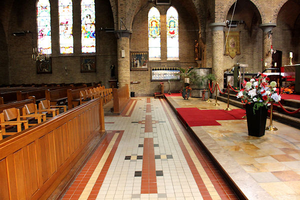 Dit is de gang voor in de kerk richting Maria altaar gezien vanaf de rechter zijgang.