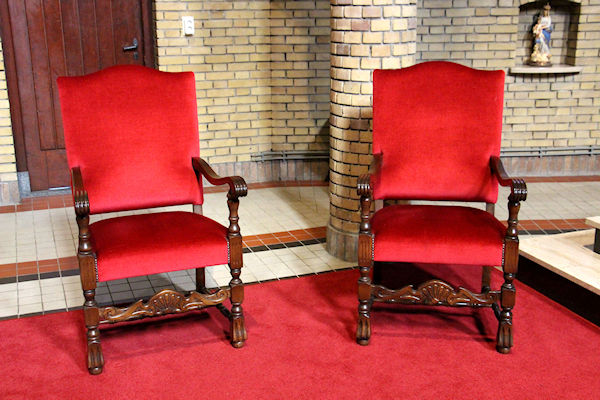 Kijk eens naar de prachtige tafel en stoelen in de sacristie. Men proeft de sfeer van een eeuwenoude traditie.