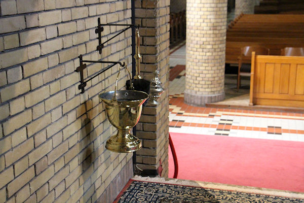 |  | Wijwaterbak De wijwaterbak op het Priesterkoor. |